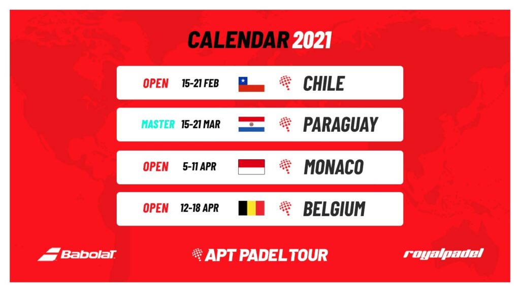 Del 15 al 21 de febrero el circuito APT tiene previsto que, si todo va bien y la pandemia mundial en la que nos encontramos se va controlando y reduciendo sus efectos, se celebren varios encuentros del APT Padel Tour.