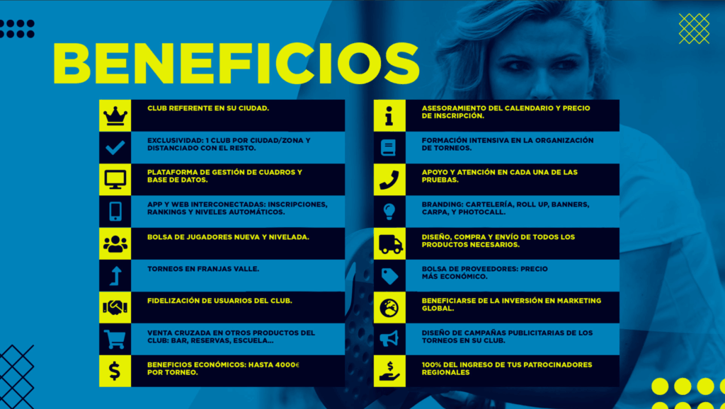 Lo principal y más importante de este circuito es la oportunidad que ofrece a los clubes de aumentar sus ingresos gracias a todos los acuerdos de marketing que la marca posee, como por ejemplo, con la web de AnalistasPadel o la inversión que hace el circuito en anuncios y publicidad, a través de diferentes canales de comunicación.