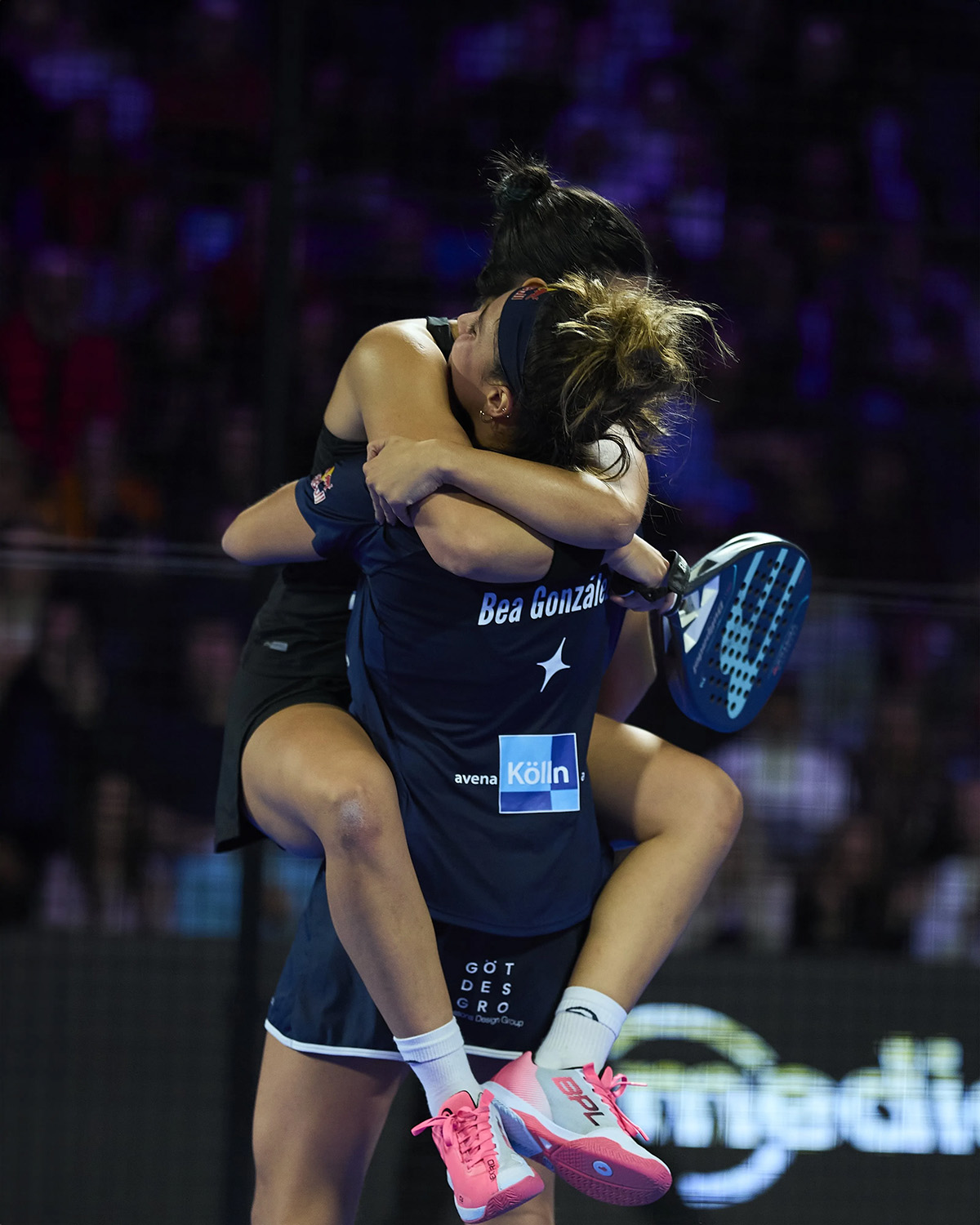 Se abría el telón de las semifinales en el último Premier Padel de la temporada con un auténtico partidazo, las dos parejas más en forma del circuito femenino frente a frente por un puesto en la final de mañana. El partido comenzaba de manera vibrante, las número uno del mundo, Paula Josemaría y Ariana Sánchez rompían el servicio de sus rivales y se adelantaban en el marcador, con el paso de tres juegos mandaban por 2-1 y saque frente a la dupla hispano-argentina. A partir de este momento, las recientes campeonas del WPT de México reaccionaban, subían un puntito más tanto en la defensa como en el ataque y conseguían revertir la situación. Tanto cambió la dinámica de la primera manga que González y Brea conseguirían volver a romper el servicio de la dupla española y terminarían llevándose el primer set por 6-4. Sin duda, el buen hacer en defensa de la argentina, Delfi Brea, que manejaba el partido desde el drive y la posición adelantada de la española, Bea González, que junto a su excelente pegada, pusieron en aprietos a la pareja más en forma de todo el año. Las número uno del mundo, por el contrario, no se iban a rendir y saltaban a pista, después del paso por banquillos, con la intención de revertir la situación y mandar el partido a la tercera manga. El comienzo del set, serían prácticamente idéntico al del principio, Josemaría y Sánchez conseguían romper el saque de sus rivales y a la altura del octavo juego del segundo set, mandaban 4-2 en el marcador y saque para la dupla hispano-argentina. A partir de ahí, hicieron ese saque y romperían el siguiente llegando al noveno juego 4-5 arriba para Bea y Delfi, remontando ese break abajo que habían estado intentado revertir antes. Todo parecía prever que el desenlace del segundo set se definiría en la muerte súbita y así fue, el tie-break determinó quienes serían las afortunadas que ganarían la segunda manga y al igual que el primer set, Delfi Brea y Bea González estuvieron más efectivas en los pequeños detalles y se llevaron el set y, por consiguiente, el partido con parciales de 6-4 y 7-6. Con este resultado, «la perla del Palo» y Delfi se convierten en finalistas de este Milano Premier Padel P1 2023 y confirman lo que todos los aficionados pensábamos, son la pareja más en forma de este final de año.