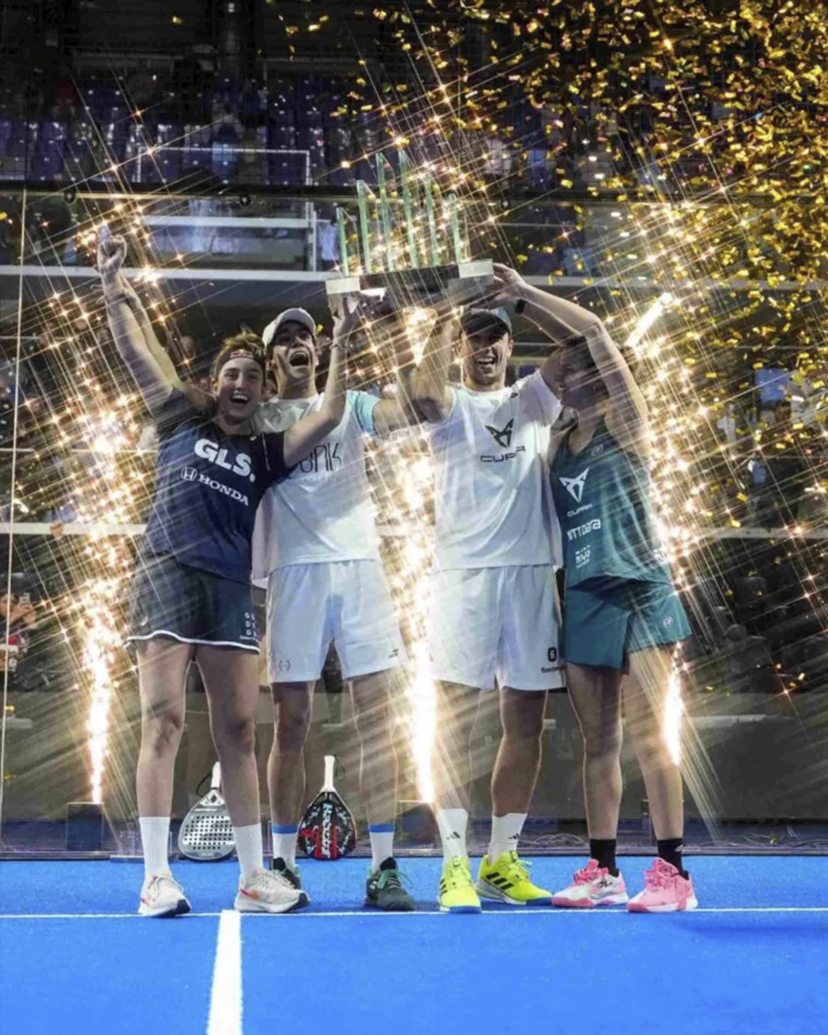 La pareja formada por la hispano-argentina siguen con su mejor racha del año y suman otro torneo a su casillero. Tras vencer a Salazar y Araújo por 6-0/7-6. Con esto, se llevan el último torneo del año de Premier Padel. Y llegan con muchas posibilidades de pelear y ganar en el último torneo del año de WPT, el Master Final. Tras haber ganado los dos últimos torneos de esta competición, en Malmö y México.The 2023 #MilanoPremierPadelP1 𝐂𝐀𝐌𝐏𝐄𝐎𝐍𝐀𝐒 🙌🏆🇮🇹