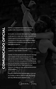 Todo comenzaba hace unos días, cuando Gemma Triay, hasta el momento, se alzaba con un comunicado anunciando que rompía la pareja. Tal y como se ha podido saber por una entrevista en Marca. Gemma rompía la pareja tras mucho tiempo de dudas y de haber confirmado en el periodo vacacional que seguirían juntas.   Esta decisión llega un poco de sorpresa tras el primer evento de la temporada, La Hexagon Cup, donde todavía formaron pareja. Tras esto Marta tuvo que buscar compañera, ya que solo jugará Riad con Gemma.