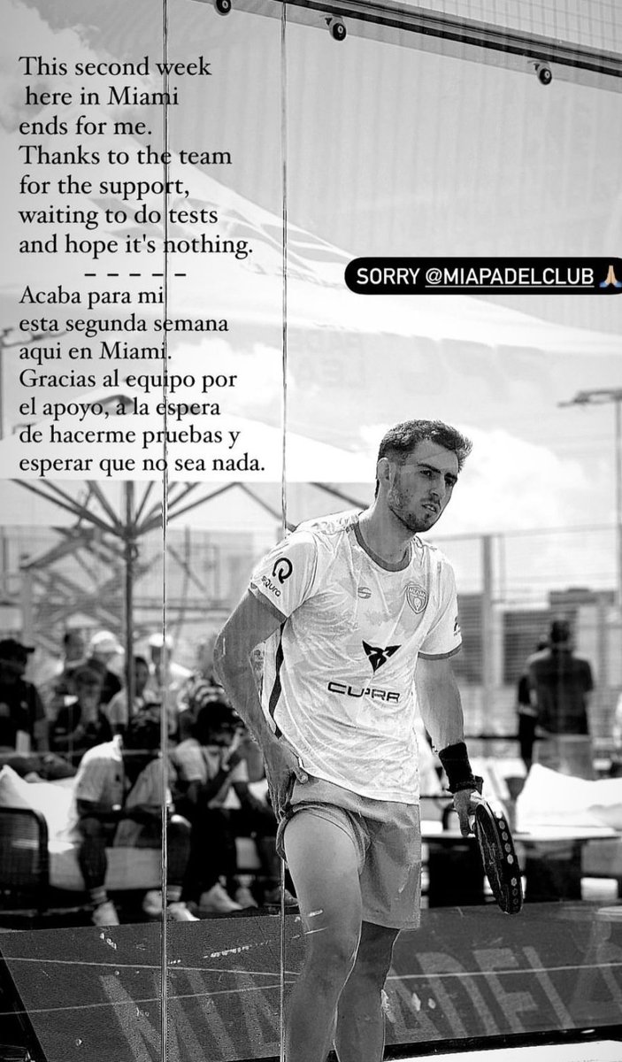 Baja confirmada, Jon Sanz eliminado o eso se diría en algún videojuego. Este suceso ha tenido lugar en Miami, durante la disputa de la Pro Padel League. La Pro Padel League se está celebrando en Miami. Un torneo por equipos que se juega en una de las pocas épocas de parón de las que gozan los jugadores. Al menos durante esta campaña del año 2024. Algunos abogan por el descanso, otros por la actividad económica, pero si es cierto que, cuanto más se carguen de partidos, más fácil será que algún jugador o jugadora sufra una lesión. Así ha sido. El navarro de 23 años se ha tenido que retirar de la competición con su equipo Miami Padel Club tras sufrir una lesión. Todavía no hay nada confirmado, pero si las dolorosas molestias de las que ha hecho voz el propio Jon Sanz en una historia de su cuenta de Instagram. El jugador ha comunicado que se despide de la Pro Padel League por ahora agradeciendo mucho al equipo por todo el apoyo recibido tanto estos días anteriores, como en los que apareció la supuesta lesión, ya que aun no hay nada confirmado. Jon ha dicho además que, se encuentra a la espera de poder hacerse pruebas para saber cuan grave puede llegar a ser la lesión.