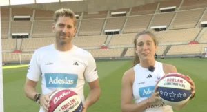 Los Harlem Globetrotters aterrizaban este viernes, 10 de mayo, en el WiZink Center de Madrid y en su llegada lanzaron un reto muy especial a dos jugadores profesionales de pádel del Adeslas Padel Team, Álex Ruiz y Martita Ortega. Las dos estrellas del pádel mundial e integrantes del Adeslas Padel Team recibieron un primer challenge de habilidad que resolvieron con soltura. Este reto consistía en poder hacer malabares con la pelota de baloncesto haciendo girarla en un dedo tal y como son capaces de hacer los Globetrotters.