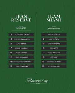 El primer partido de la Reserve Cup 2025 fue el de Edu Alonso y Agustín Tapia contra Mike Yanguas y Javi Garrido. El duelo fue muy reñido. En el primer set, el cordobés y su compañero, superaron a sus oponentes con un 6-3. Luego, el argentino y el español salieron a flote, y así ganaron el segundo set por un gran 6-3. Por último, se jugó el super tiebreak que para la suerte del equipo Team Miami, Tapia y Alonso lo ganaron por un increíble 10-7.