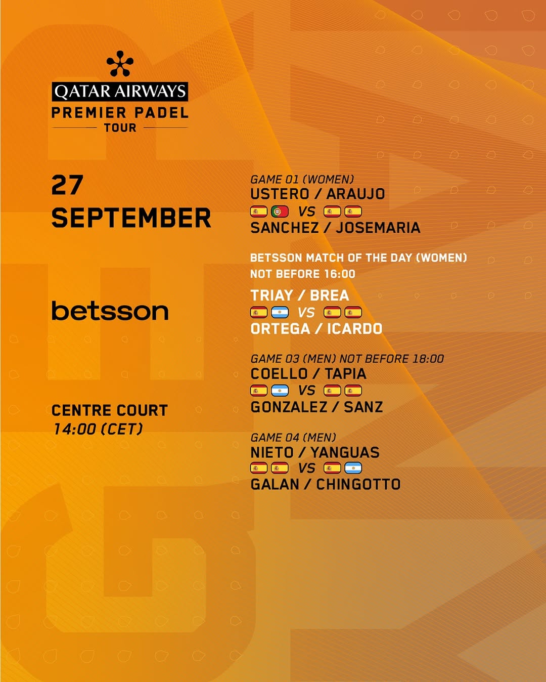 [PUBLICIDAD] Si quieres darle un extra de emoción a la competición, Betway.es es tu mejor opción. En esta plataforma encontrarás los mejores mercados de apuestas para pádel, con una amplia variedad de alternativas para jugar de forma segura y responsable.
