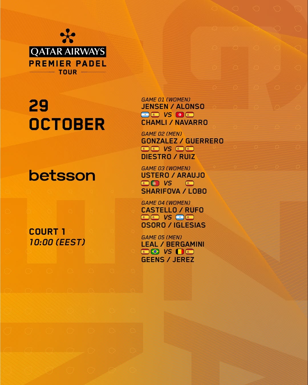 Octavos de final del Premier Padel Newgiza P2, ¿Quieres saber los horarios, dónde puedes verlo y dónde apostar?, te lo contamos a continuación.